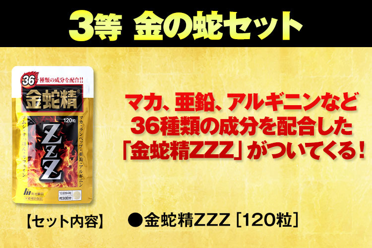 マカ、亜鉛、アルギニンなど36種類の成分を配合した「金蛇精ZZZ」がついてくる!